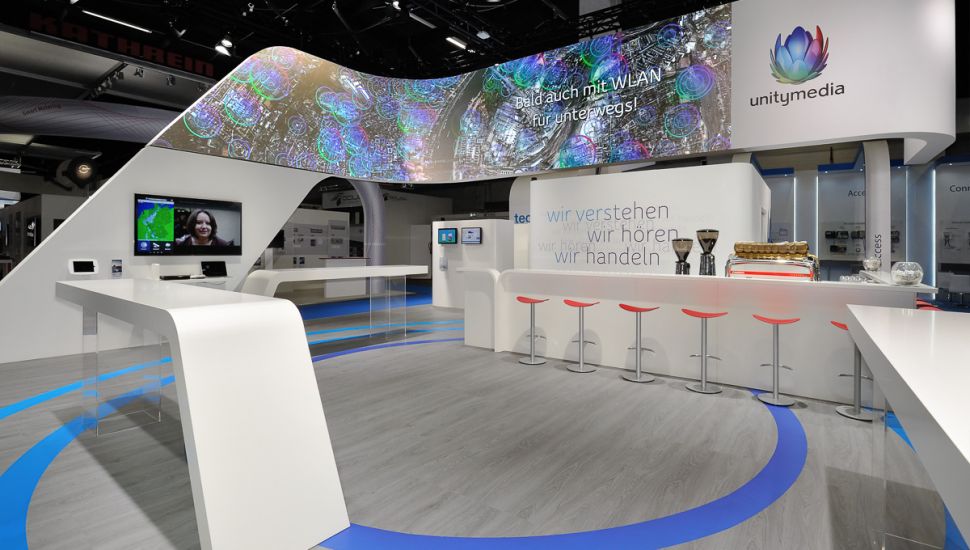 Oberhausen. Mit einem bildstarken Messeauftritt präsentierte sich Unitymedia auf der ANGA COM 2016 in Köln, internationale Fachmesse für Breitband, Kabel und Satellit. Im Auftrag der Kölner Eventagentur movendi übernahm der Oberhausener Messebau-Spezialist AMECKO die Konzeptionierung und Umsetzung des Standdesigns. Mit seiner Planung für den Markenauftritt von Deutschlands schnellstem Internet-Provider hat sich das Team von AMECKO zum vierten Mal in Folge gegen seine Mitbewerber durchgesetzt.