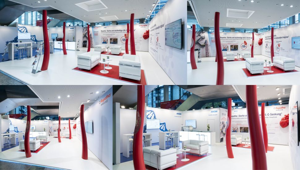 Der Strukturschaum Rohacell gehört zur Produktfamilie der Performance Foams. Mit seiner thermischen Stabilität ist er leicht und problemlos formbar. Aufgabe für den Oberhausener Messebauer AMECKO war es, zu dem Aufbau und Handling des Messestandes ein abstrahiertes Turbinenexponat mit Elementen aus dem Spezialwerkstoff zu fertigen, um so das Produkt äußerst spannend zu inszenieren.